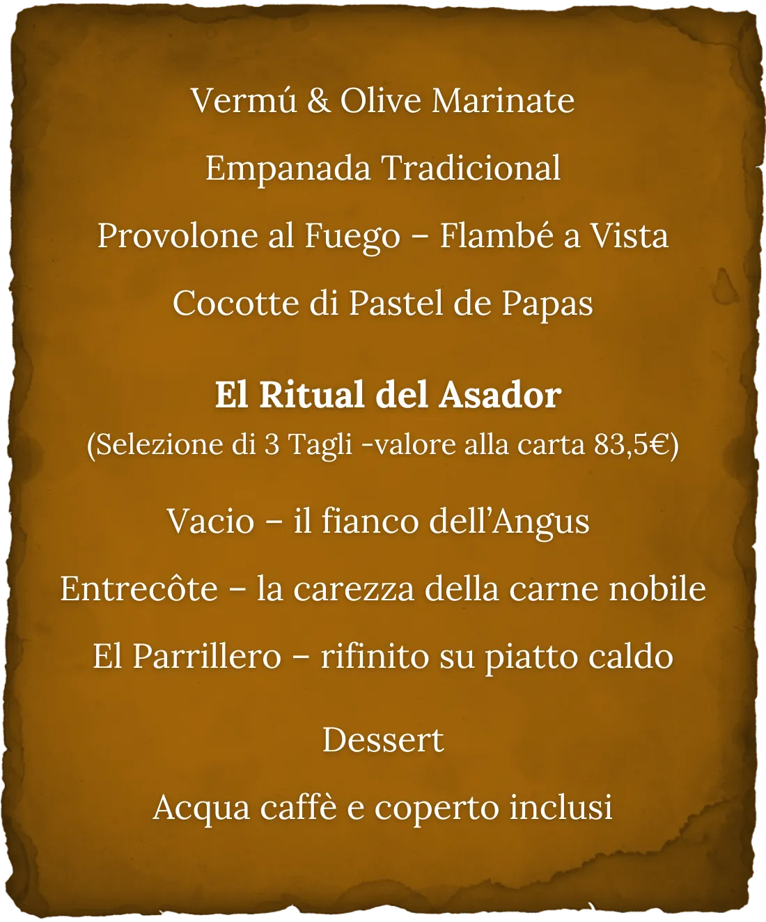 Non ci affidiamo a grill improvvisati, ma a veri Parrilleros argentini: uomini che vivono di brace, di fuoco e di pazienza.